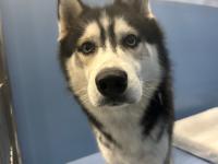 ADULT BLACK / WHITE HUSKY. NO COLLAR OR CHIP