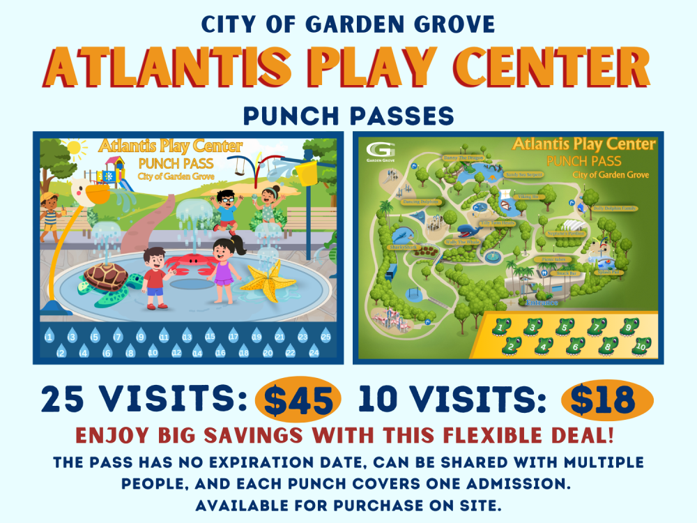 - $2 per person entrance fee due day of visit (Via cash or check payable to the City of Garden Grove)