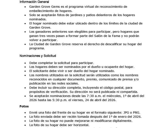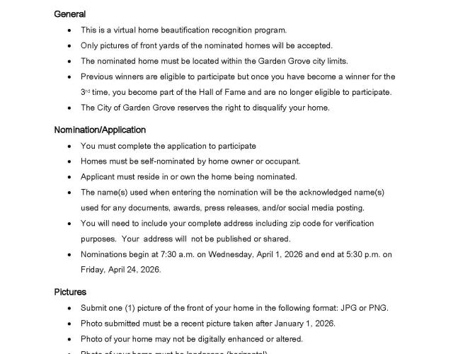 In 2022, the City launched a revised home beautification program called, "Garden Grove Gems." This year's virtual competition once again spotlights the efforts of homeowners working hard to keep their neighborhoods looking gorgeous.
